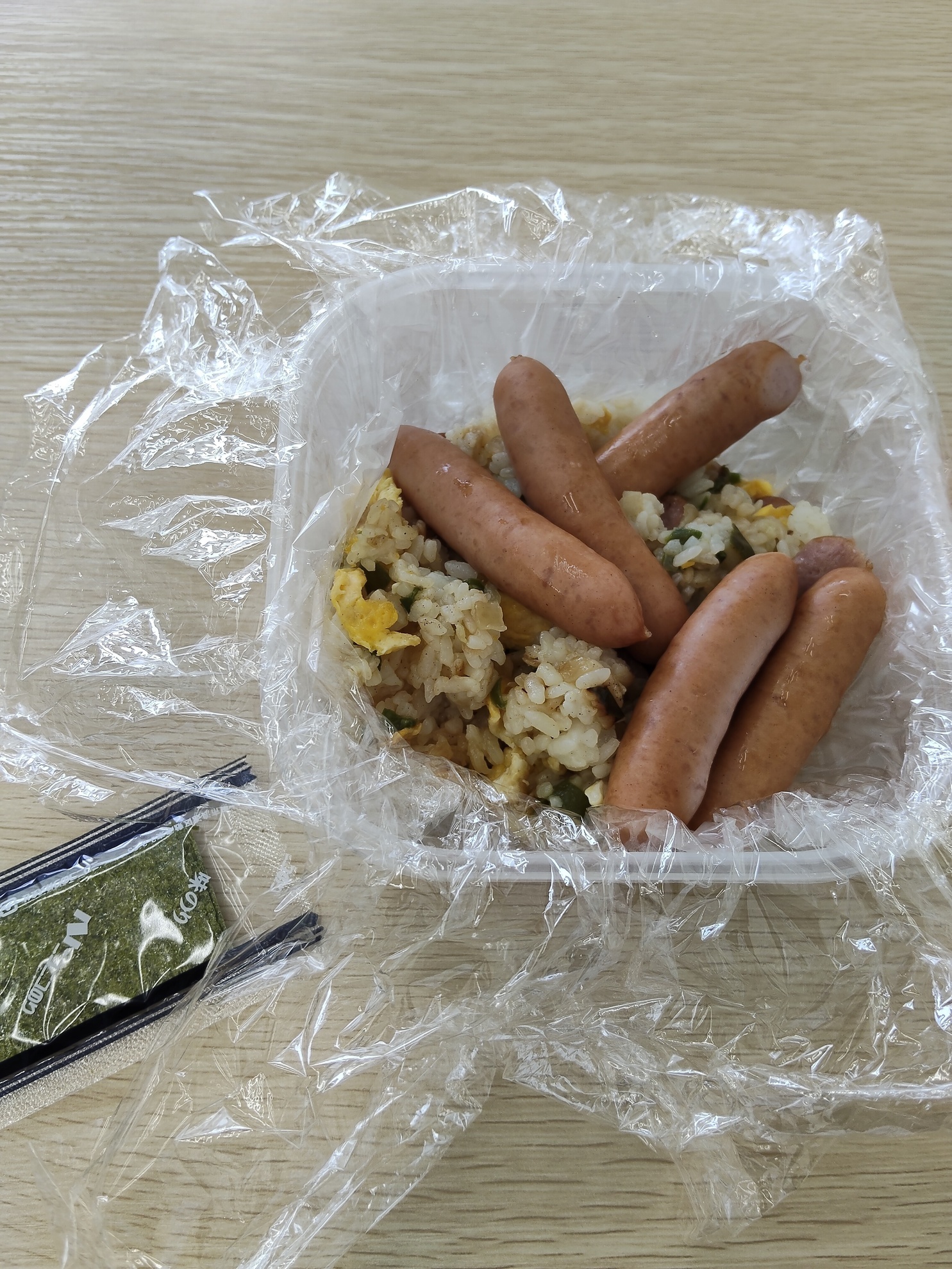 前日の夜ごはんで作ったチャーハンと、